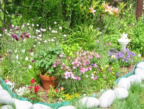 もらい物や拾い物を寄せ集めて作った「アイランド」の花が、今年は一番元気。