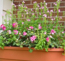 鉢ごと6ドルで買った、八重咲きホウセンカとネメシア。
