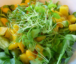 バジルの花、タイムの花、ナスターシャムの花、レタス、きゅうり、ドレッシング