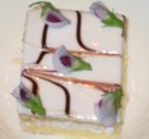 マメ科の花を、シンプルなホワイト・ケーキのトッピングに使ってみました。白いアイシングの上ならどんな色もひきたつでしょう。