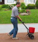 *芝用高窒素肥料を散布する。