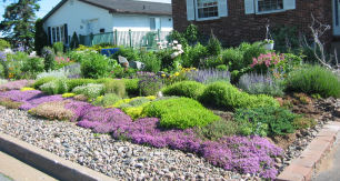 メンテの大変な芝生なんか、もうイヤ!ということで、芝生を全部はがしてフロントヤード全体を花壇にしてしまったお宅もけっこうあります。それほど広くないフロントヤードの場合、確かに芝刈り機をゴロゴロ納屋からひいてくるのも面倒だし、同じ手間とお金をかけるならきれいな花を咲かせたほうがいいですよね。