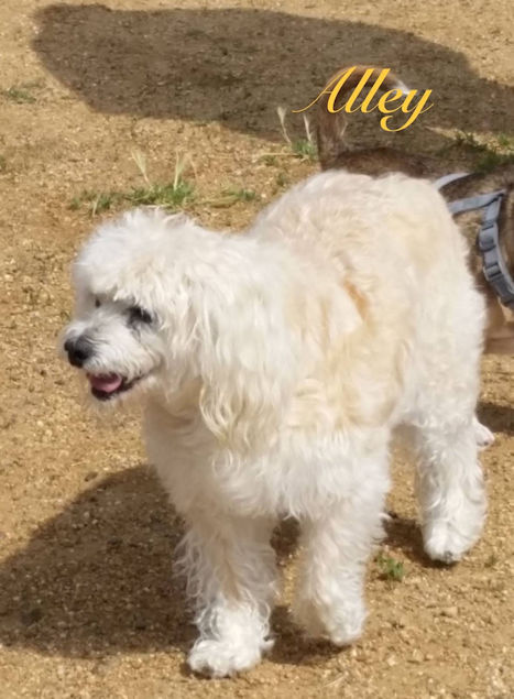 彼女は実は、飼い主が当時住んでいた家の隣の家の犬だった。お隣さんには小さい子供が何人もいて、子犬のALLEYはあまりかまってもらえなかったらしい。いつも毛がくしゃくしゃですごくやせていた。「だから、Alley Cat(野良猫)って呼んでたのよ」と、今の飼い主。その後その家族が引っ越すことになり、犬をもらい受けたのだという。