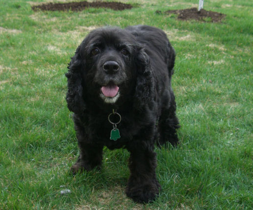獣医さんに連れていったところ、純血のコッカースパニエルのメスで、まだ1歳前後だろうと言われた。たまたまその地方に旅行に来ていた飼い主とはぐれてしまったのか、何かの理由で捨てられたのか。すごくやせていたことから、かなりの日数をさまよっていたらしい。しかしすぐにそんなつらい過去は忘れ、新しい家族のもとで幸福な日々をおくることになる。