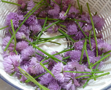 チャイブの花をつんで、洗って水けをきります。