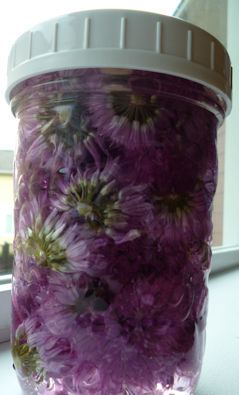 材料は、チャイブの花、ホワイト・ビネガー、消毒したガラス瓶だけ。