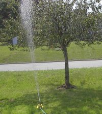 活着したあとも、最初の夏はスプリンクラーで頻繁に水撒きをして乾燥を防ぎます。水道代がすごいことになります。それでも、せっかく張替えた高価な芝生地をムダにするよりはマシでしょう。